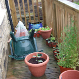 However, I am most proud of my compost. When we moved in, I decided we had to have a compost. I ordered a compost container, but it never came, so I decided to turn one of my pots into a make shift compost bin...and it has worked brilliantly. I keep it uncovered. I started it with some cardboard, scraps and a small amount of potting soil that came from some fresh herbs I bought at the store. After a couple of weeks I had 3 permanent resident worms that came out of nowhere (I wish I could mark them to keep track that they are the same ones). I was so excited and made it my duty to keep those worms happy. I love having a worm bin, but I wasn't about to go buy worms...and these are real worms, big, thick earthworms...I always think they look good to eat, but I don't think I will be trying that.